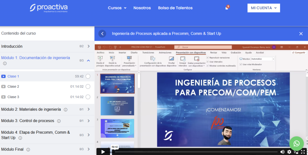 Para acceder a esta formación es necesario que tengas conocimiento sobre el funcionamiento de Plantas Químicas, preferiblemente plantas de Oil&Gas u otras plantas macro (alimentos, tratamiento de aguas, producción de químicos en general). Conocimiento sobre las fases de un proyecto de ingeniería. Estudios terciarios culminados o en su defecto al menos dos años de experiencia en empleos relacionados a la planificación de proyectos, construcción/operación de plantas, consultoría de ingeniería (diseño de plantas). Éste último requisito puede ser sustituido si presentas un Certificado de Procesos para Oil&Gas nivel Básico/Intermedio u otro similar.